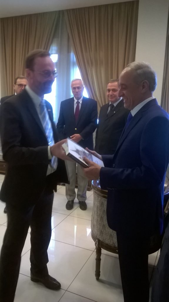 Au Liban, la délégation APF a rencontré les responsables de l’Association du Martyr lieutenant-colonel Sobhi Al Akoury (créée pour aider les familles des soldats libanais morts au champ d’honneur), le Ministre de la Défense Yaacoub Sarraf et, last but not least, le président libanais Michel Aoun qui a reçu officiellement la délégation au palais présidentiel.