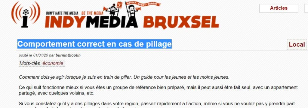 Alors bien sûr, ils joueront la carte du 1er avril mais en lisant bien ce texte, entre quelques phrases humoristiques, on y retrouve bel et bien des conseils pratiques pour organiser des pillages au cas où la situation sociale devenait explosive.