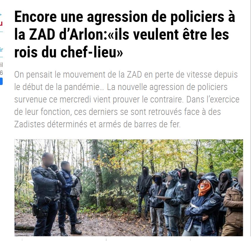 Ainsi à Arlon, sur un terrain occupé illégalement (la Sablière de Schoppach), des « zadistes » (les occupants de ce qu’ils appellent « Zone A Défendre ») se sont attaqués à des policiers. Manifestement pas content d’un survol de leur zone par un drone, dans le cadre des surveillances liées à la distanciation sociale, les gauchistes (masqués et armés de barres de fer) sont sortis de la sablière et s’en sont pris aux policiers.