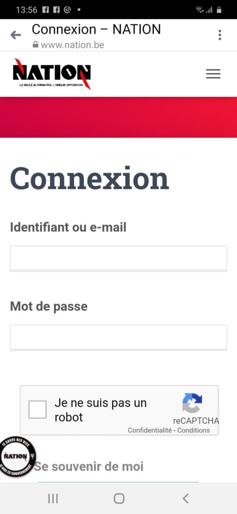 L’autre nouveauté est que les adhérents auront accès à NATION Infos, via un « espace membre» sur le site www.nation.be. Les adhérents de NATION, en ordre de cotisation, vont très bientôt recevoir un lien via leur adresse mail. Ce lien va générer un mot de passe leur permettant d’accéder à cet «espace membre »[1] : https://www.nation.be/espace-membres/