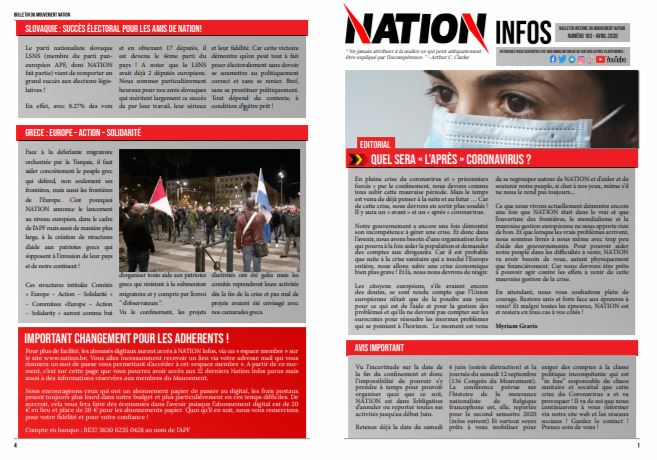 A partir de ce moment, c’est par cette page qu’il y aura accès aux 12 derniers “Nation Infos” parus mais aussi à des informations réservées aux membres du Mouvement.
