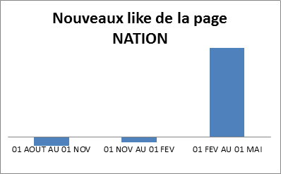 Mais pour vous donner une idée, voici le schéma concernant l’évolution du nombre de “J’aime” sur la page “Mouvement NATION”
