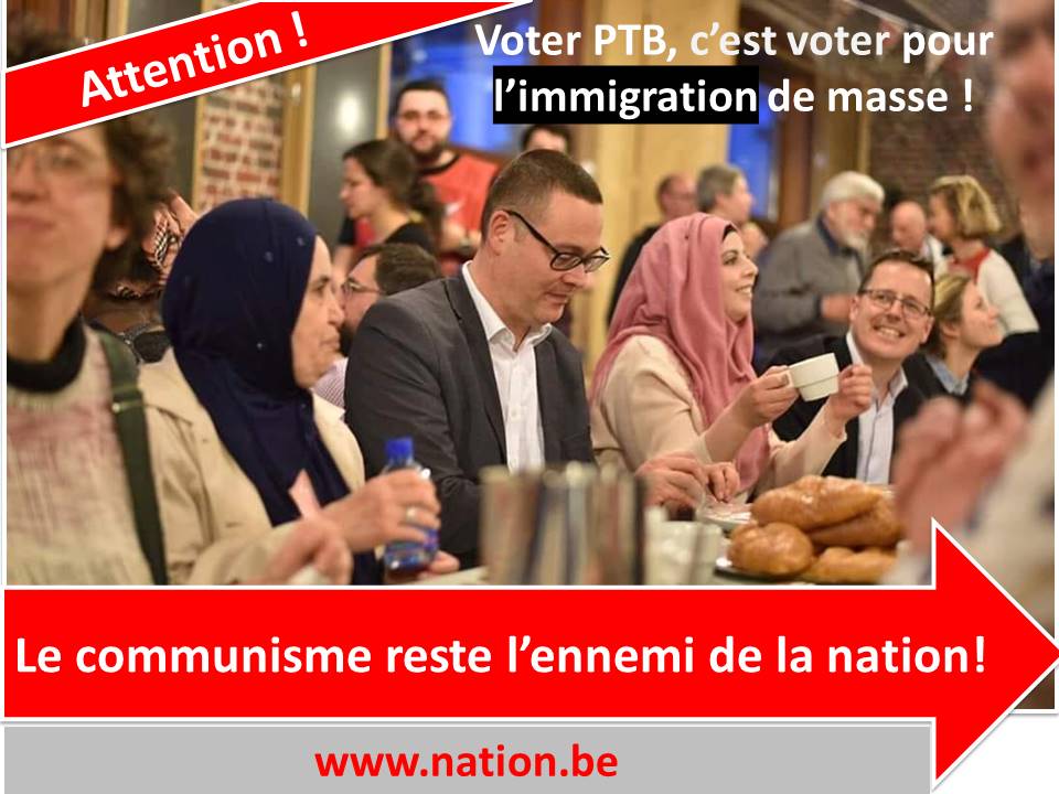 La seconde est que le PTB n’aime pas trop qu’on souligne son côté pro-immigration et pro-islamique car il sait bien que son électorat de base est souvent composé de « petits blancs » qui s’ils sont révoltés à juste titre par l’injustice sociale, n’en sont pas pour autant favorables à l’immigration.