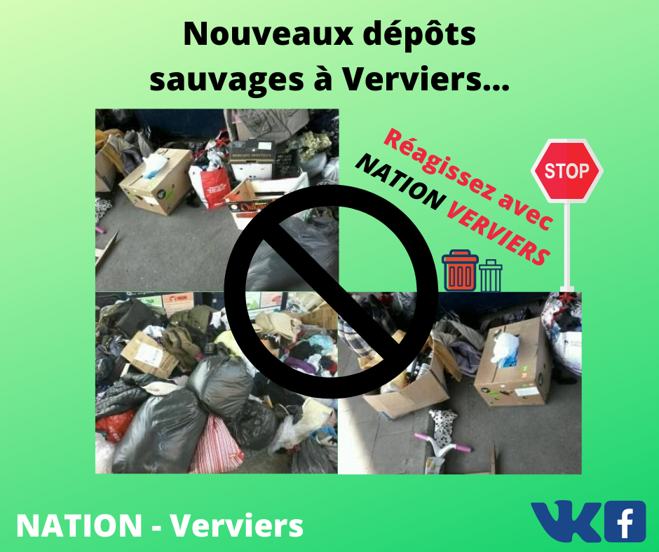 NATION Verviers a lancé une campagne contre les dépôts sauvages. Les noyaux militants de NATION pour la région du Centre vont également lancer une initiative en ce sens.