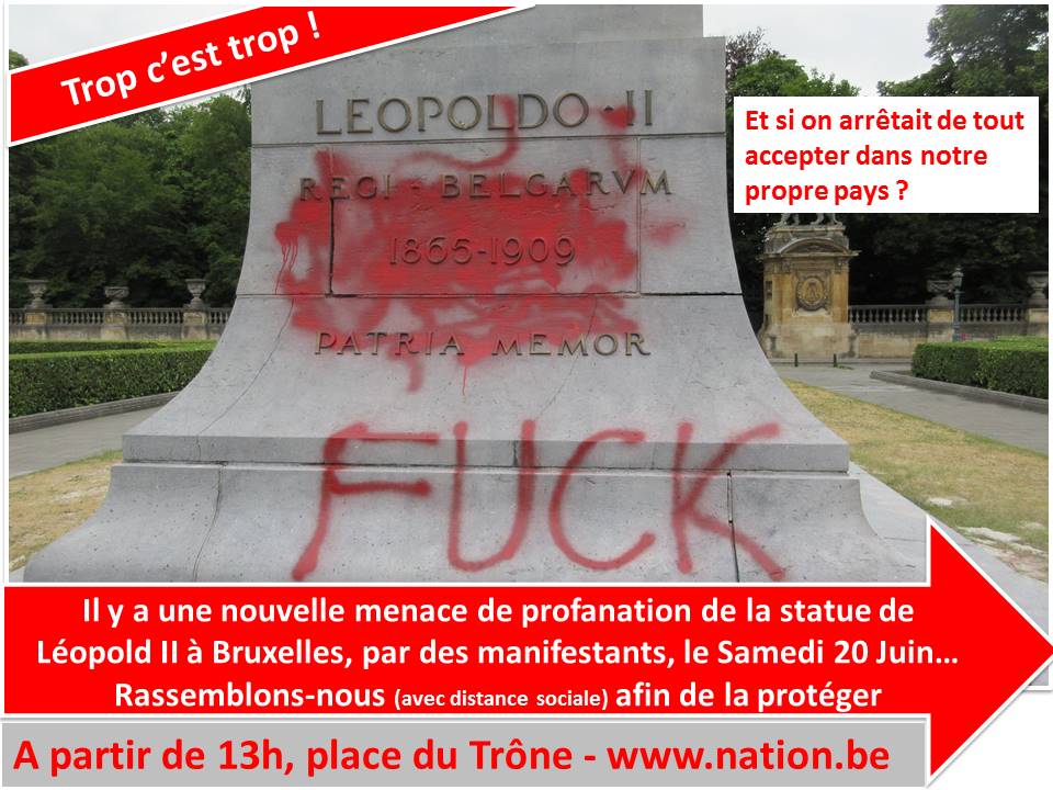 De par son caractère et connaissant les activistes de gauche qui vont encadrer ce rassemblement, il est certain que tôt ou tard, la statue de Léopold II située non loin de là, sera une nouvelle fois la cible de ces extrémistes.