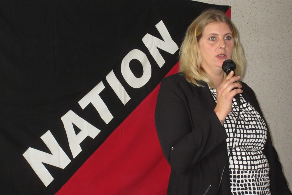 Bonjour, oui bien sûr, je m’appelle Nancy Van Den Eede, j’ai 36 ans, je milite depuis 5 ans maintenant dans le mouvement NATION. J’ai commencé comme simple militante et assez rapidement, j’ai pris des responsabilités au sein de NATION.