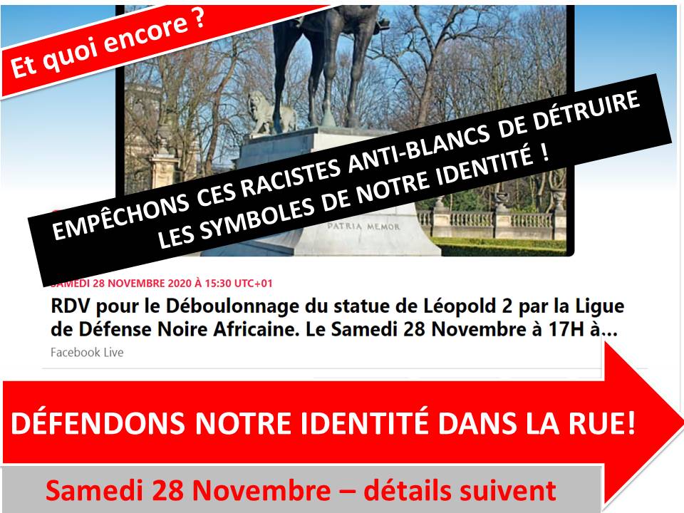 Statue de Léopld II : le 28 Novembre, défendons notre identité dans la rue!