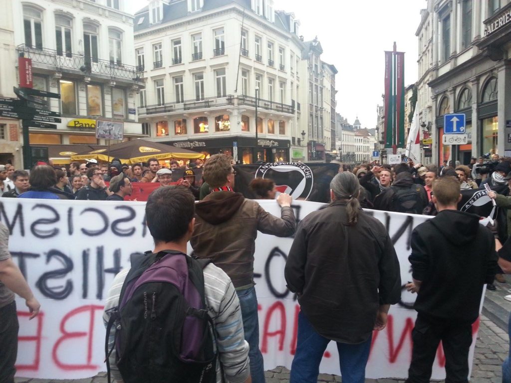 Avril 2014, à Bruxelles, des groupes d’extrême-gauche qui espéraient pouvoir perturber une réunion d’un grand parti populiste se retrouvent face aux militants de NATION qui les mettront en échec.