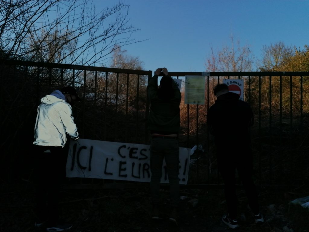 Cet après-midi, une équipe de militants sont allés accrochés, à l’entrée du terrain prévu pour la construction de ce complexe, des panneaux contre la Charia et un calicot rappelant qu’ici, on est bien en Europe.