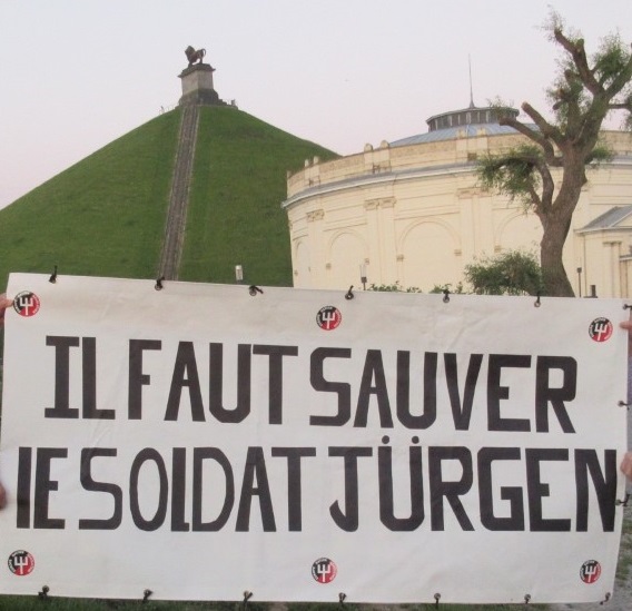 C’est sur le champ de bataille de Waterloo, là où sont morts tant de soldats, que s’est affiché le slogan “Il faut sauver le soldat Jürgen ! ”
